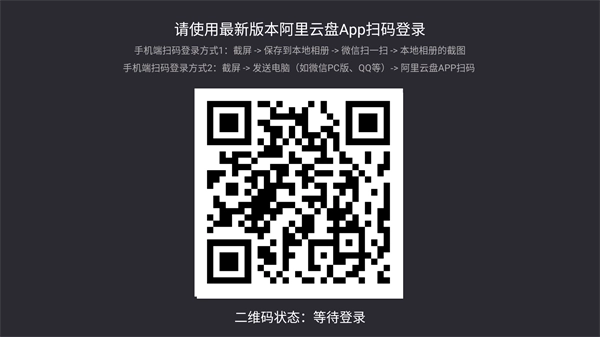 安装打开后,需要扫码登陆阿里云盘账号才能使用;