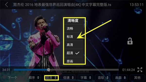在视频播放时,你可以对清晰度、播放速度、字幕和音轨等进行调整。