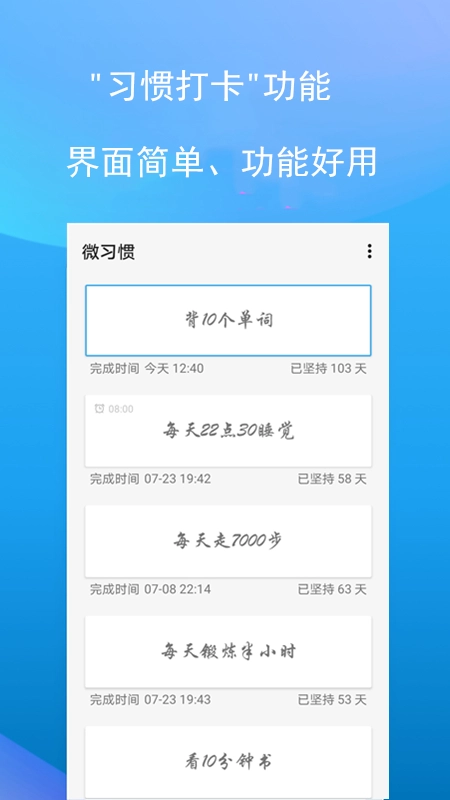 每天完成一个习惯、签到一次,改掉坏习惯时的那种满满成就感,就交给微习惯来实现吧!