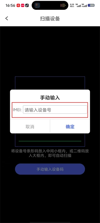 在“扫描设备”界面,点击【手动输入设备码】按钮后,会弹出“手动输入”对话框。
