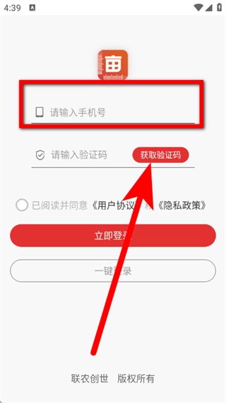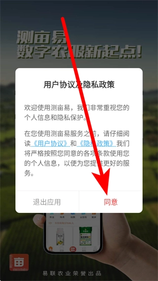 打开测亩易,在弹窗中点击同意,进入登录页面。