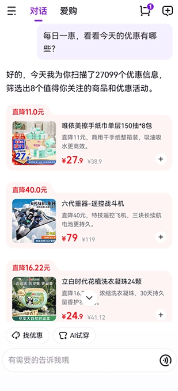 2、例如直接让它帮你查找优惠,就能发现不少优惠力度大的商品