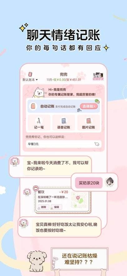 记账也能变得有趣起来,通过沉浸式的对话互动,语音快捷输入的内容会被清晰分开突出,帮您轻松记录日常的每一笔开支与收入。AI智能算法会自动为您分类和整理数据,不用再为繁琐的分类步骤而烦恼,让财务管理变得更高效。