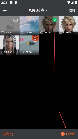 在视频选择页面,选定【目标视频】后点击【已完成】按钮,即可进入视频编辑操作界面。