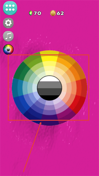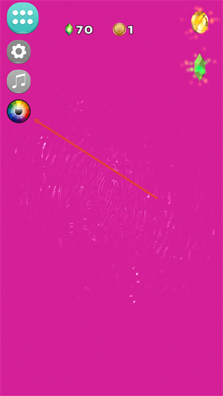 进入球体互动页面后,点击左侧的色彩轮盘图标,就能触发色彩相关的互动机制,与此同时页面还会掉落金币、钻石之类的资源。