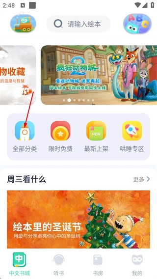 在中文书城页面,点击“全部分类”选项,即可进入图书分类页面。