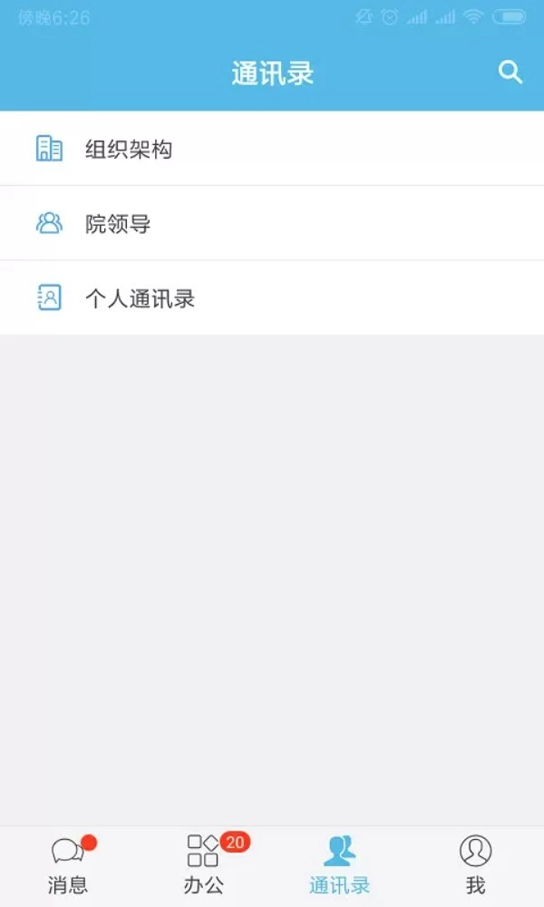 当需要联系同事时,点击底部的通讯录即可,这里支持通过组织架构查看同事信息,也能直接搜索个人资料。
