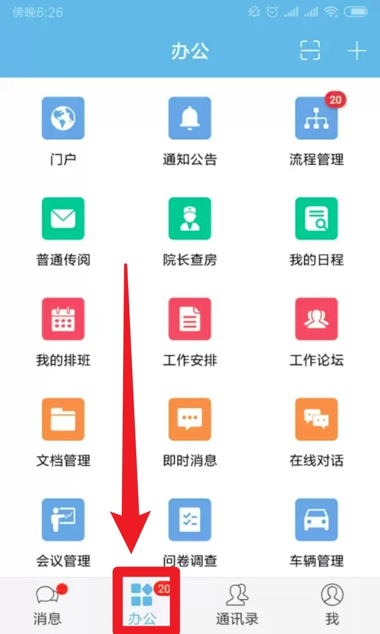 登录成功后,点击底部的办公图标,就能进入审批流程、排班安排等相关模块。