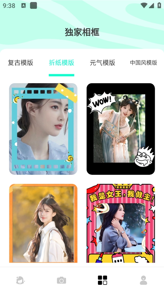 最后在“独家相框”页面,能够挑选多个相框模板来制作图片。