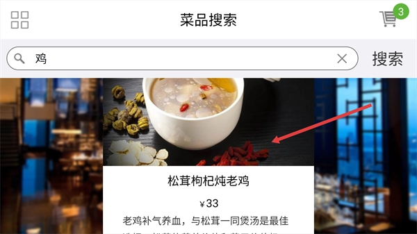 输入目标菜品名称,进行搜索。