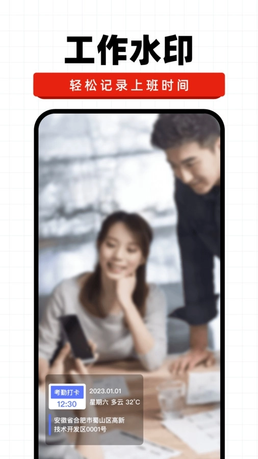工作水印资料可便捷记录上下班时间,助力快速完成考勤。