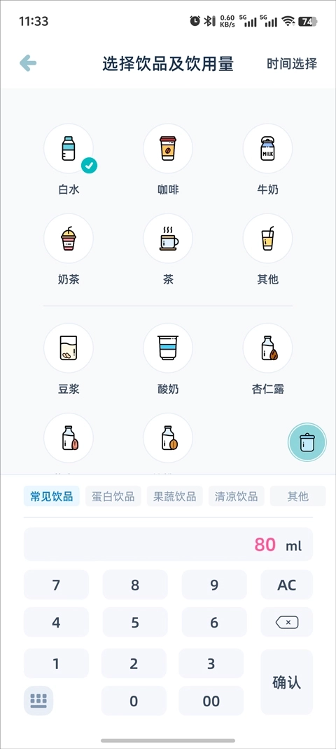 除此之外,还能依据自身的实际状况,自主选择品类并设定引用量来录入数据,像白水、咖啡、牛奶这类不同的饮品,其记录方式也存在差异,大家可以按照自己的喜好进行定义设置并保存。
