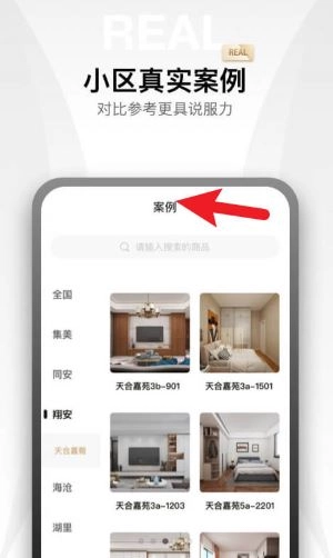 进入案例页面后,选择对应的小区名称,就能查看实景装修案例,这样更便于参考真实场景。