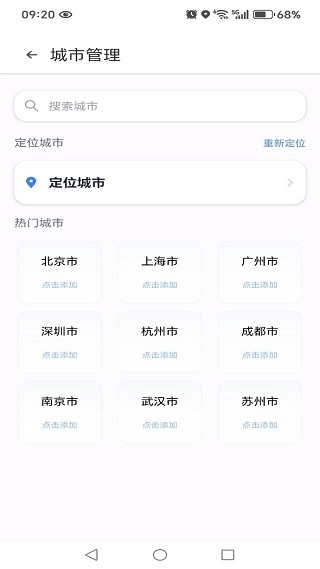 结合首页顶部的城市管理功能,可进行不同城市的切换操作。