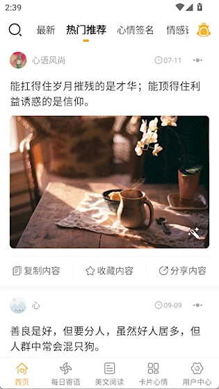 每日都会推送新鲜的语录内容,保证用户能持续获取新颖且贴合当下情绪的优质内容。
