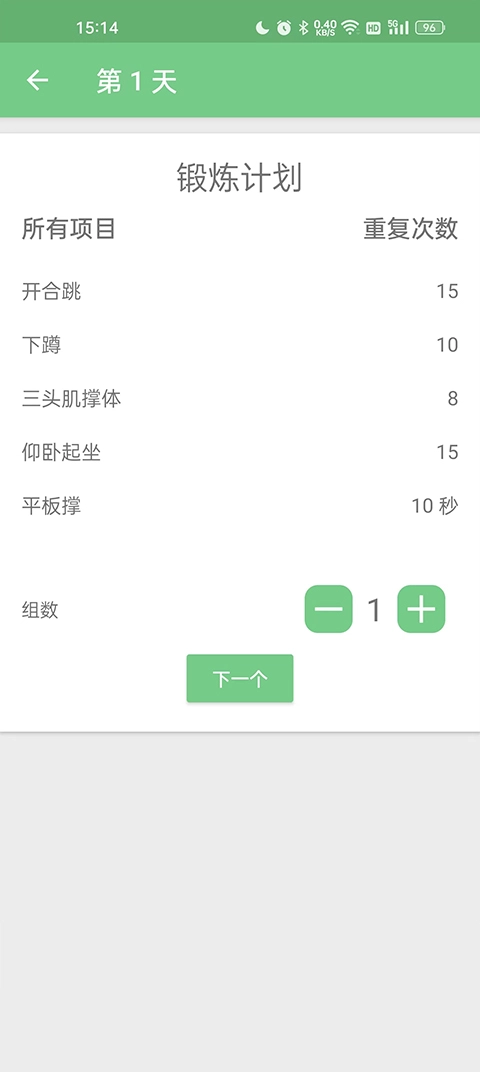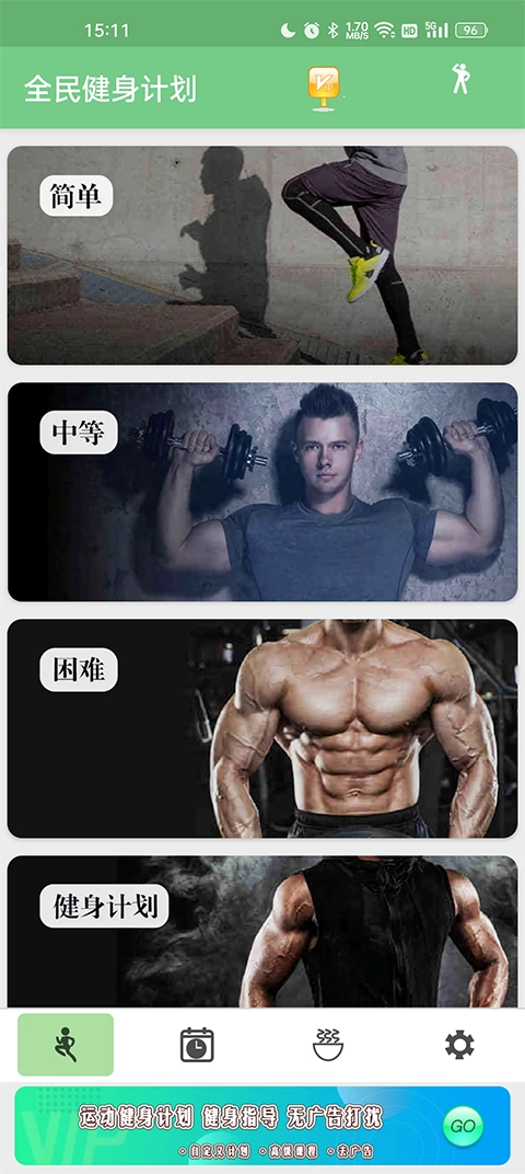 在首页,首先你得依据自身的训练基础挑选一份健身计划。建议从简单的入手,要是你觉得轻松,就可以选中等难度甚至更难的,依此类推。