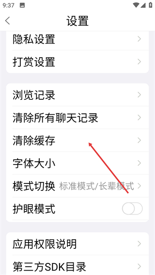 回到【设置】页面,你可以通过操作【清除缓存】来释放软件占用的存储空间,同时也能对【浏览记录】-【聊天记录】这类数据相关功能进行管理。