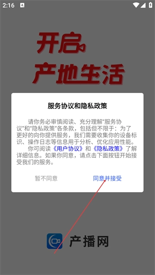 进入应用后,需阅读《服务协议和隐私政策》,确认无误后点击“同意并接受”按钮,就能开启服务。