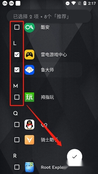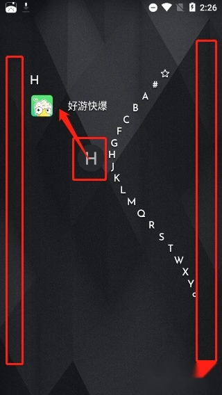在左侧或右侧屏幕上下滑动,借助头文字的英文缩写,就能检索手机里安装的软件以及系统程序。
