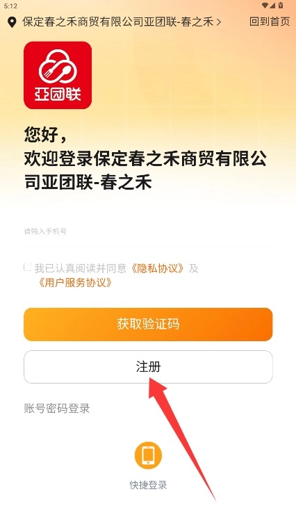 在登录界面选择所在区域的合作商铺,然后点击注册按钮,就能进入信息填写页面。