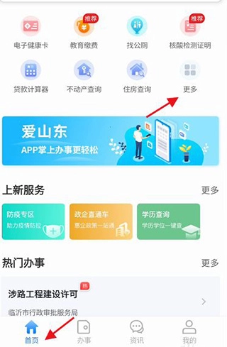 点击左下角首页,点击右上角的更多进入