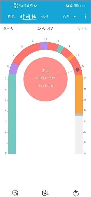 2、借助时间轴来了解自己在特定时间段内的时间使用状况!