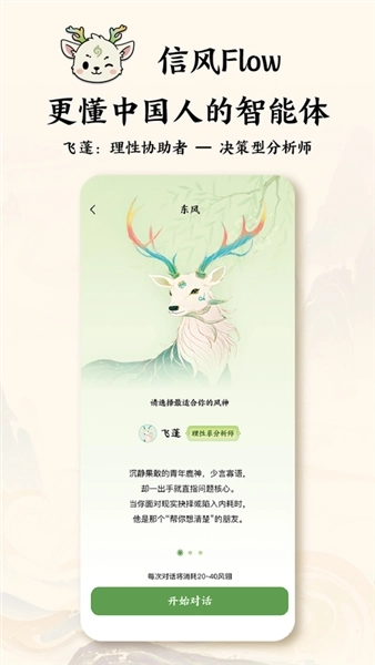 信风Flow是一款专为国人设计的AI智能体助手,平台聚焦丰富的传统文化内容,设有情绪之风、选择之风、命理之风三位特色AI角色。用户可依据自身需求,挑选对应的AI智能体进行问答互动,输入问题即可快速获取解答,随时随地享受个性化陪伴服务。该助手支持结合八字进行命理测算,通过个性化陪伴与结构化提问,助力用户舒缓情绪波动、梳理人生困惑,从而做出更清晰的决策。此外,软件还配备了多款AI智能体,用户可自由选择感兴趣的智能体展开对话交流。