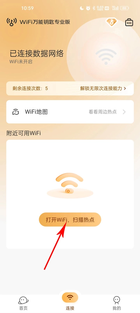 一键开启并连接可用Wi-Fi,摆脱流量不够用的烦恼。