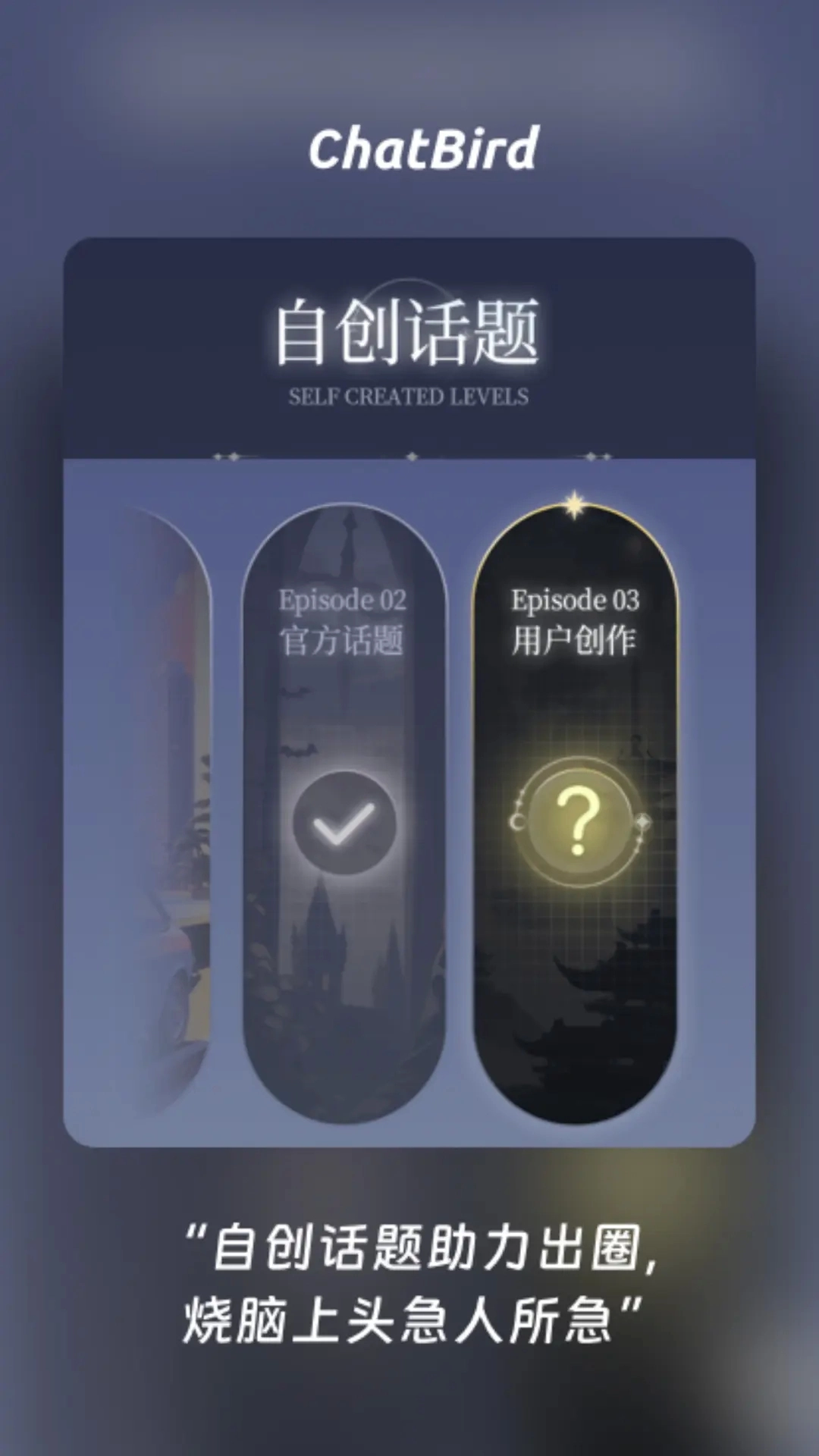 ChatBird正版沉浸式虚拟场景模拟涵盖生活、情感等各类难题,借助角色扮演帮助用户释放压力,同时预演相应的应对方案。