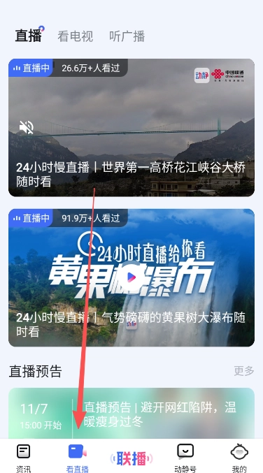 1、打开看直播功能列表内的直播播放。