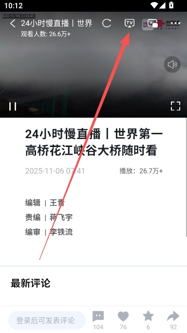 2、点击播放画面内的TV投屏显示。