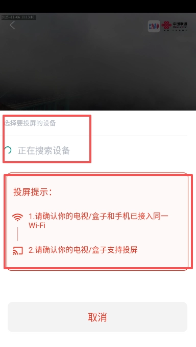 3、等待电视投屏设备搜索完成,在电视上播放。