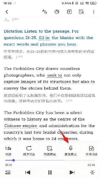 选定具体的教材内容后,点击【跟读原文】功能模块;