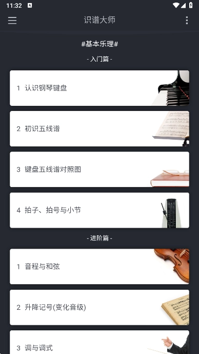识谱大师是一款专为音乐爱好者打造的识谱学习软件,用户可通过它进行钢琴谱学习,掌握乐谱的乐理节奏,软件还包含丰富的功能说明,感兴趣的朋友不妨来试试!