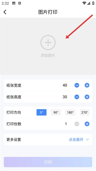 在图片打印页面,点击【添加图片】按钮。