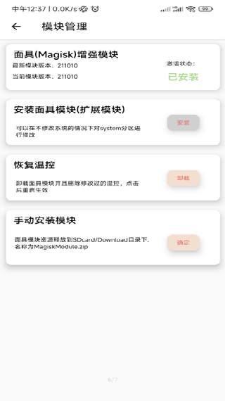 借助MIUI温控功能,也可以实现面具(Magisk)增强模块的安装流程。