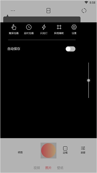 2、应用内整合了多种拍摄功能选项,涵盖触控快门、延时拍摄、闪光灯调节以及构图辅助线等实用工具;