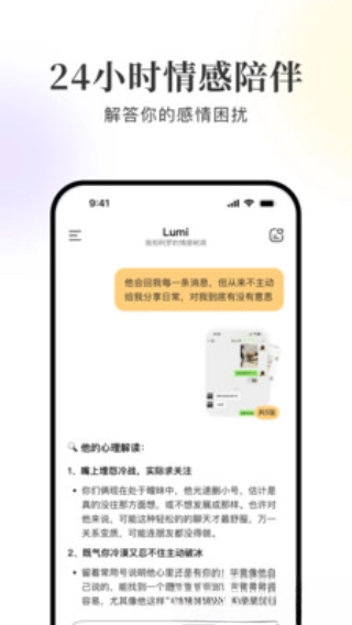 Lumi噜米是一款面向存在心理压力及情绪相关困扰用户的智能社交互动类安卓应用,它借助心理学视角来洞察用户的烦恼,并提供针对性的开导支持。不管是面对人际关系中的不安、深夜里的情绪起伏,还是希望更深入地认识自我,用户都能在这里得到真诚的回应与陪伴。