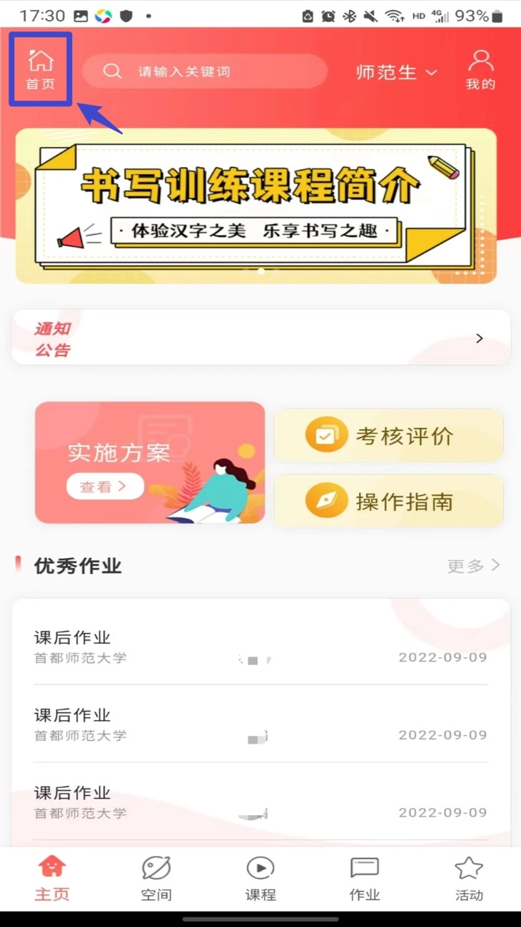 登录成功后进入首页,在这里可以查看通知公告、了解项目介绍以及浏览优秀作业展示。