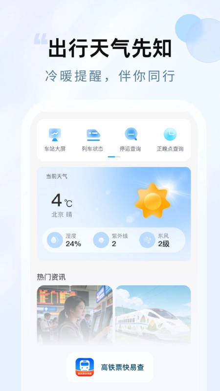 高铁票快易查是一款实用的出行服务软件,能随时查询高铁及动车票信息,帮助用户熟悉各类常用路线,及时掌握不同资讯,支持实时查询各类信息,还能快速了解天气情况,同时可记录出行支出明细。