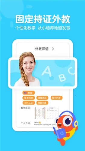 伴鱼少儿英语的一对一外教模式特别出色!它能为孩子营造纯正的英语学习氛围。平台的外教均来自英美澳加等英语母语国家,不仅100%持有TEFL或TESOL等权威教学资格证书,而且录取率仅5%,所有外教都经过了专业系统的培训。孩子可以和外教进行一对一的在线视频或语音交流,足不出户就能学习地道的英语口语。软件配备自动录音功能,方便随时回顾学习过程、检验学习成效。此外,还支持自主定制学习计划,灵活安排陪练时间。课程内容十分丰富,涵盖经典儿童绘本、趣味互动游戏等,通过PK竞赛、角色扮演等形式,充分激发孩子的学习兴趣,促使他们高频次地进行英语表达输出。课后老师会及时提供辅导,上课录音也能随时调取复习。这种模式打破了传统语言学习的局限,让孩子在真实的语言场景中边学边用,轻松提升英语听说能力,为孩子筑牢扎实的英语基础,确实非常便捷!
