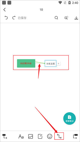 4、如图,左右两个图标,点击后即可在绿色方块上添加分支。
