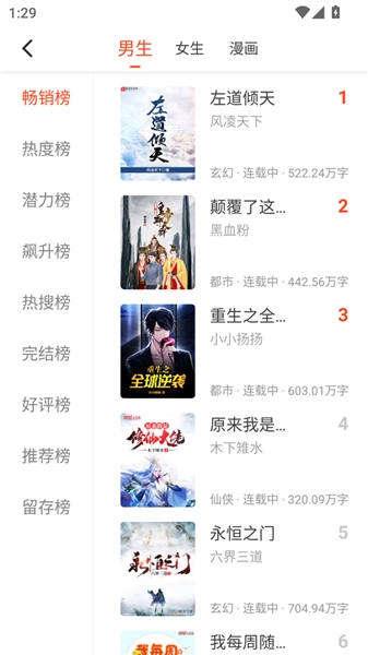 2、追书大全的安装首页设有不同类型的男女动漫榜单,借助大数据算法,为你推荐优质好书!