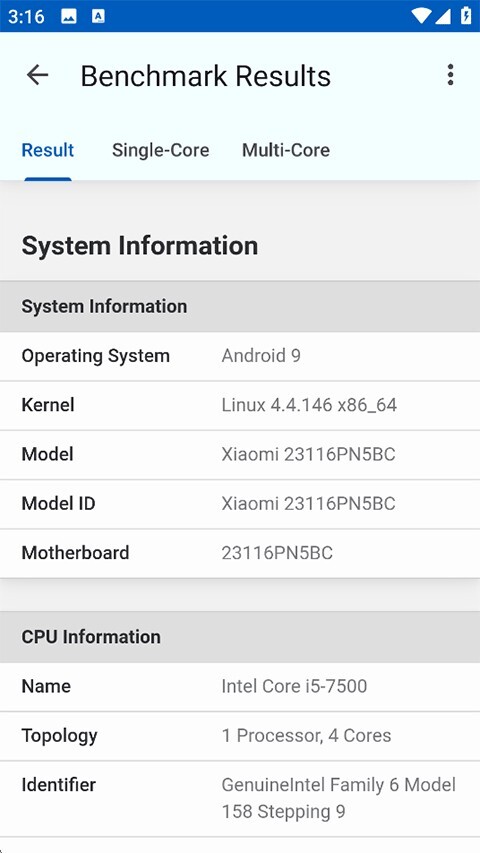 3、跑分完成即可查看你的设备单核&多核处理分数;