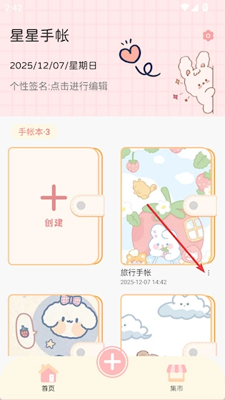 点击手帐本右下角的三点按钮