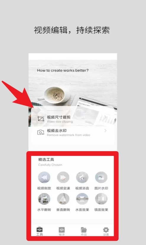 回到首页下方的工具区域,你可以挑选倒放、静音、去除水印等功能,对内容开展更深入的编辑加工。