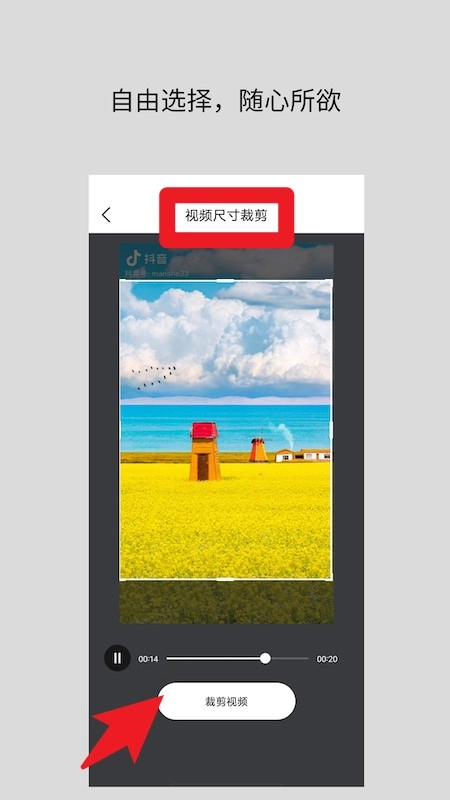打开应用后,在首页找到“视频尺寸裁剪”功能并点击,即可导入视频,接着调整其显示范围完成裁剪操作。