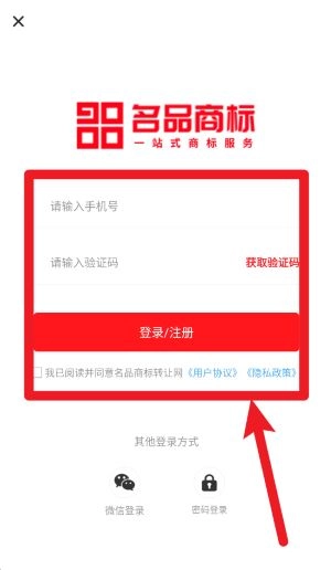 在登录页面填写手机号和验证码,同时勾选用户协议与隐私政策,随后点击红色按钮,就能完成注册或登录流程。