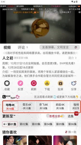 5.要是当前视频播放不够流畅,你可以试着切换到其他播放源,这样能获得更优质的观看体验。