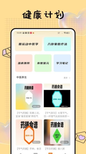 4、养生资源丰富多样,软件将各种中医养生学习资源全面推荐,可以查找各种药膳食谱学习药膳养生方法。
